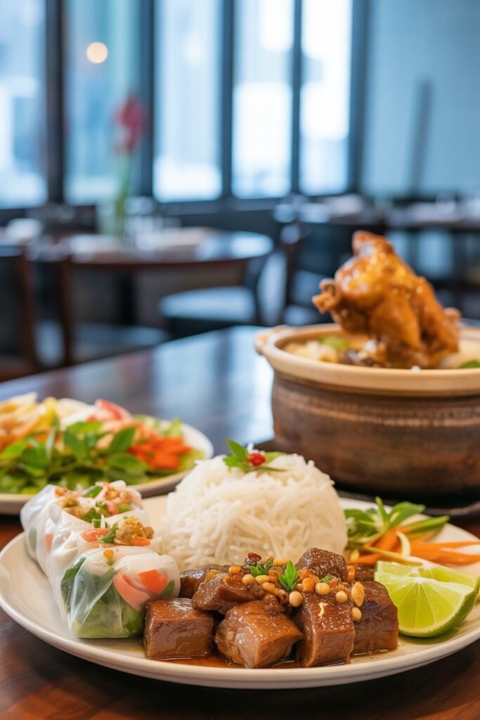 - Shaking Beef (Bo Luc Lac) – tender cubes of beef with a savory, slightly tangy sauce that’s simply irresistible.