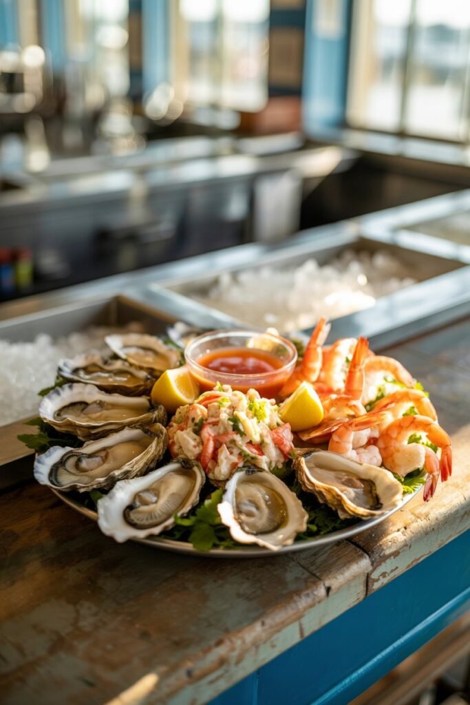 - Fresh oysters – briny, cold, and perfectly paired with a squeeze of lemon.