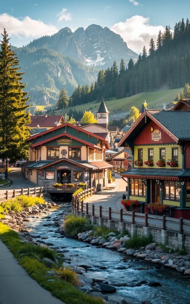 Nestled in the Cascade Mountains, the town is designed with charm in mind, featuring Bavarian-style buildings, flower-filled streets, and mountain backdrops that change with every season.
