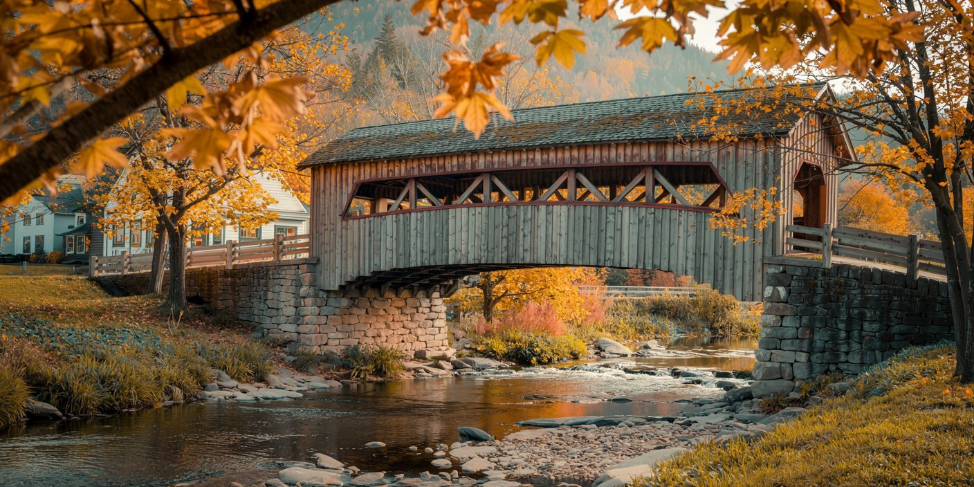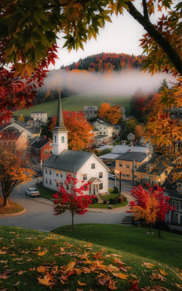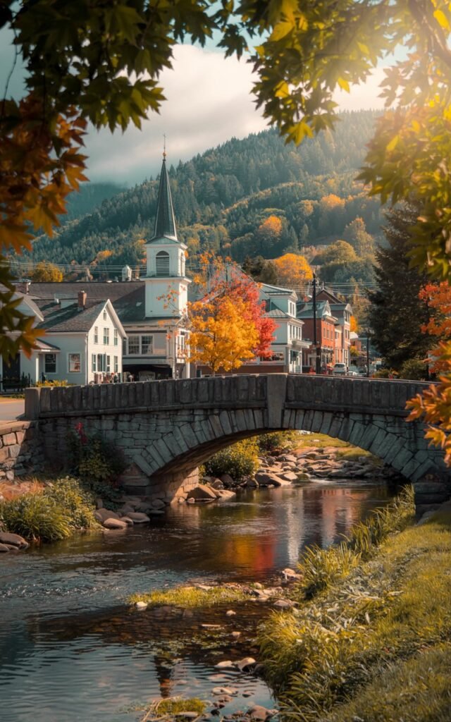 Everything about it feels intentional but effortless — covered bridges, white church steeples, quiet streets, and nature that frames the town instead of overpowering it.