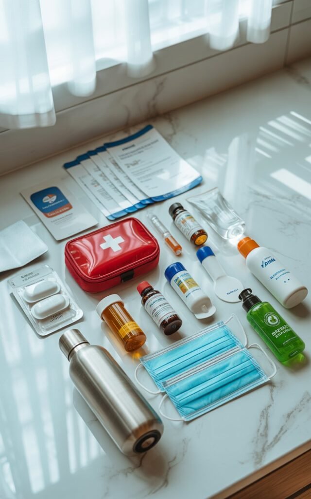 I also keep a small first-aid pouch in my carry-on for flights and long travel days.
